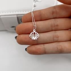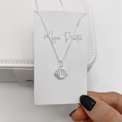 Colar pingente concha vazada 12mm 45cm | Mya Prata