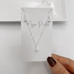 Colar pingentes zircônias gota 6mm corrente cadeado 40+5cm | Mya Prata
