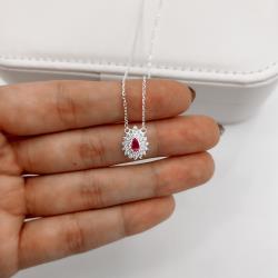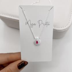 Colar entremeio zircônia gota rosa com cravejado 13mm 40+5cm | Mya Prata