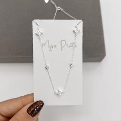 Colar entremeio zircônias redonda 3mm e losango 6mm 40+5cm | Mya Prata