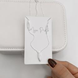 Colar pingente navete cravejado 16mm com entremeios navetes vazados 40+5cm | Mya Prata