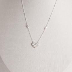 Colar coração cravejado 13mm com entremeios zircônias 40+5cm | Mya Prata