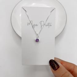 Colar pingente zircônia redonda ametista 5mm 40cm | Mya Prata
