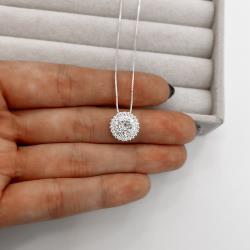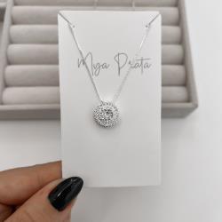 Colar botão cravejado 12mm caixa alta 45cm | Mya Prata