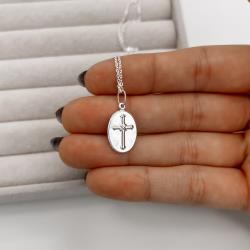 Colar pingente medalha dupla face Santo Expedito e cruz 16mm corrente cadeadinho 45cm | Mya Prata