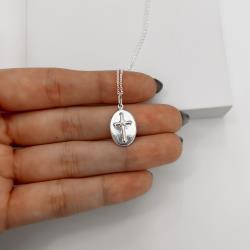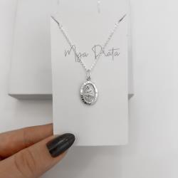 Colar pingente medalha dupla face São Benedito e cruz 16mm corrente cadeadinho 45cm | Mya Prata