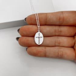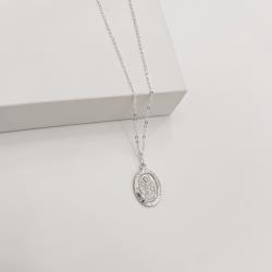 Colar pingente medalha dupla face Santa Ana e cruz 16mm corrente cadeadinho 45cm | Mya Prata