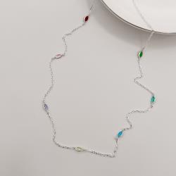 Descrição: Colar entremeios zircônias navetes coloridas 6mm corrente cartier 45cm fabricado(a) em prata