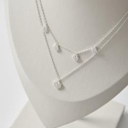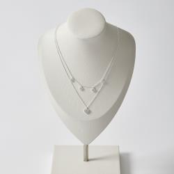 Descrição: Colar duplo pingentes corações cravejados 5mm 40cm e coração cravejado 8mm 45+5cm fabricado(a) em prata