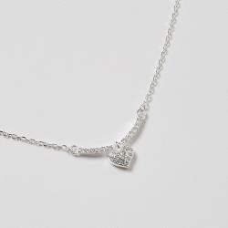 Colar entremeio curva cravejada 17mm pingente coração cravejado 50cm | Mya Prata