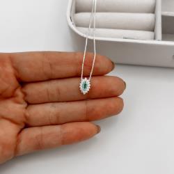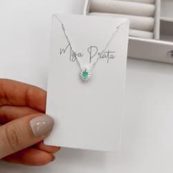 Colar zircônia navete turmalina com cravejado 10mm 45cm | Mya Prata