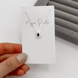 Colar zircônia navete ônix com cravejado 10mm 45cm | Mya Prata