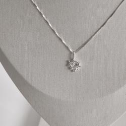 Descrição: Colar pingente zircônia coração trabalhado 9mm 45cm fabricado(a) em prata