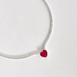 Colar Riviera 2.1 com zircônia coração rubi 9mm 40+5cm