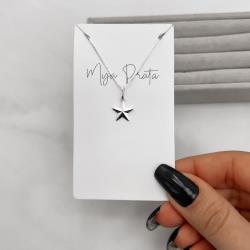 Colar pingente estrela vinco 12mm 40cm | Mya Prata