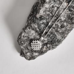 Colar pingente botão vazado cravejado 10mm 45cm | Mya Prata