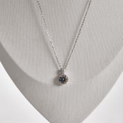 Colar pingente moissanite rainbow green 6.5mm com cravejado corrente cadeadinho 45cm ródio | Mya Prata