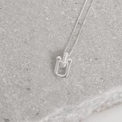Colar pingente elo com cravejado 16mm 45cm | Mya Prata