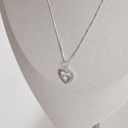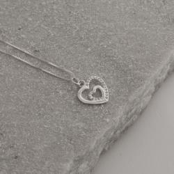 Descrição: Colar pingente 2 corações vazados com cravejado 13mm 45cm fabricado(a) em prata