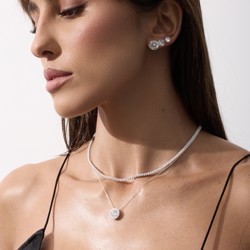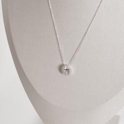 Colar pingente zircônia redonda com cravejado 12mm corrente cadeado 40+5cm | Mya Prata