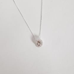 Descrição: Colar pingente zircônia redonda com cravejado 12mm corrente cadeado 40+5cm fabricado(a) em prata