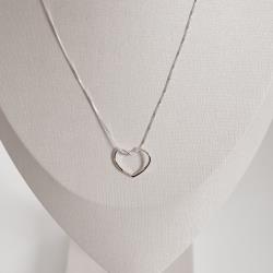 Descrição: Colar pingente coração vazado com cravejado 20mm 45cm fabricado(a) em prata