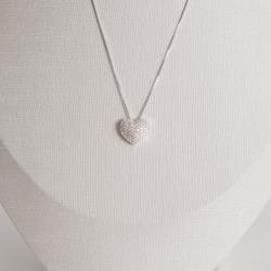Colar coração cravejado 13mm 45cm | Mya Prata