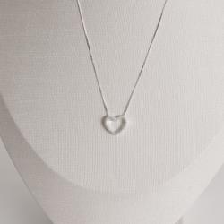 Colar coração vazado cravejado 15mm caixa alta 45cm | Mya Prata
