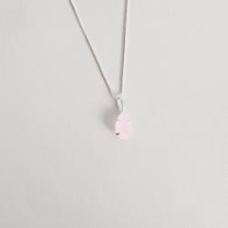 Colar pingente zircônia gota rosa leitoso 12mm 45cm | Mya Prata