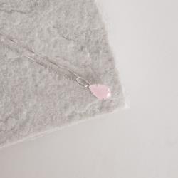 Colar pingente zircônia gota rosa leitoso 12mm 45cm