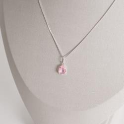 Colar pingente zircônia gota rosa 12mm 45cm