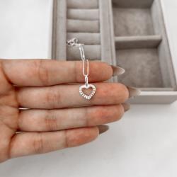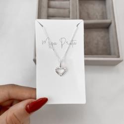 Colar pingente coração vazado desenhado 11mm 40cm | Mya Prata