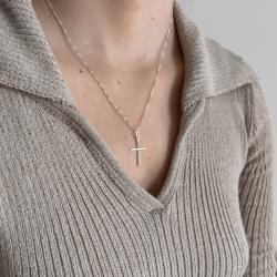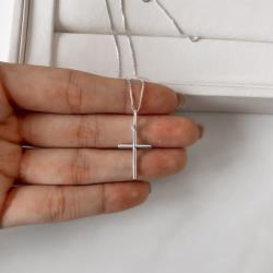 Colar pingente cruz palito 21mm 45cm | Mya Prata