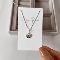 Colar pingente 2 corações lisos 12mm 45cm | Mya Prata