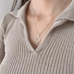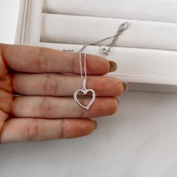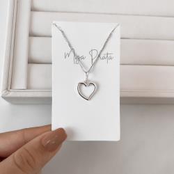 Colar pingente coração vazado esquerdo 15mm 45cm | Mya Prata