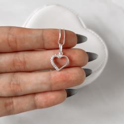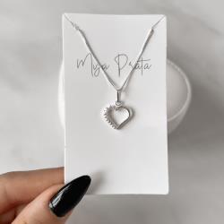 Colar pingente coração vazado metade cravejada 12mm 45cm | Mya Prata