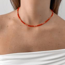 Colar cristal laranja 3mm com bolas 40+5cm | Mya Prata