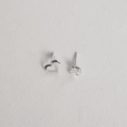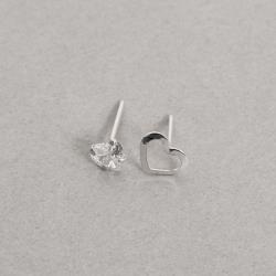 Dupla zircônia coração 5mm e coração vazado 8mm | Mya Prata