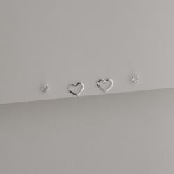 Dupla zircônia coração 3mm e coração vazado 8mm | Mya Prata