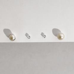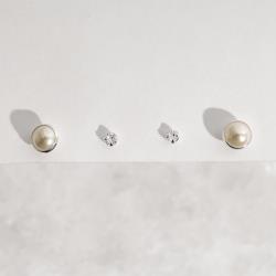 Dupla zircônia 3mm e meia pérola 6mm | Mya Prata