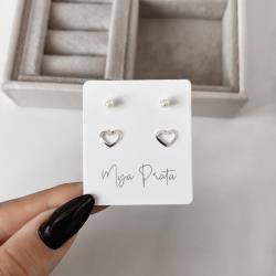 Dupla pérola 3mm e coração vazado 8mm | Mya Prata
