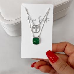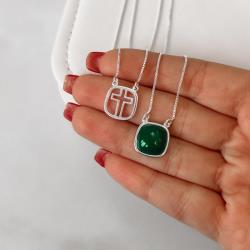 Escapulário cruz e pedra ágata verde v15 60cm | Mya Prata