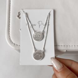 Escapulário medalha dupla face sol, mar, sal e onda v15 60cm | Mya Prata