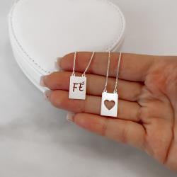 Escapulário placas fé e coração vazado v15 60cm | Mya Prata
