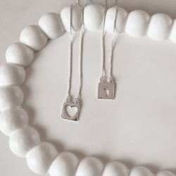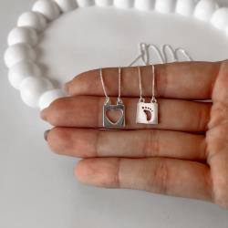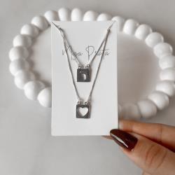 Escapulário placas pé e coração vazado v12 60cm | Mya Prata