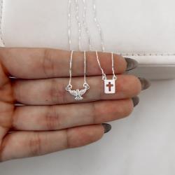 Escapulário placa cruz e Espírito Santo cravejado v12 60cm | Mya Prata
