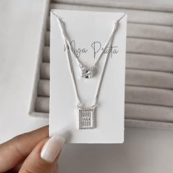 Escapulário placa mãe cravejada e zircônia oval v15 60cm | Mya Prata