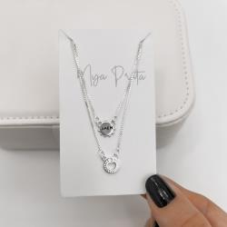 Escapulário medalhas Amém e coração vazado v15 60cm | Mya Prata