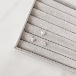 Pingente coração vinco metade cravejada 8mm | Mya Prata