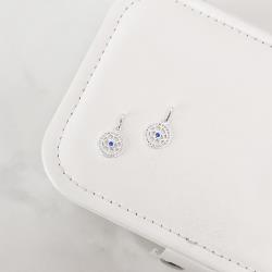 Pingente medalha olho cravejado com zircônia azul 12mm | Mya Prata